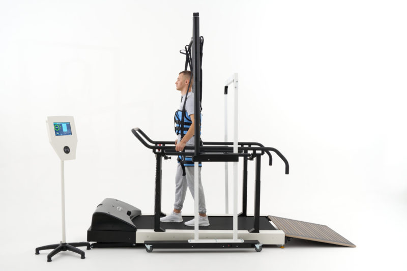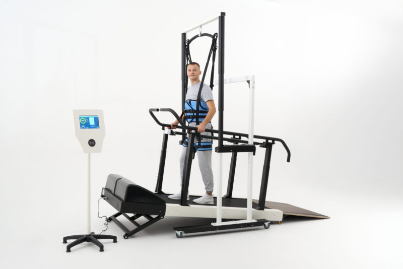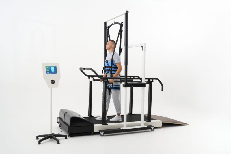 Запросить стоимость«Орторент С+» — реабилитационная система, состоящая из беговой дорожки и медицинского подвеса в комплекте с поддерживающими жилетами для вертикализации и поддержки пациента во время занятий.